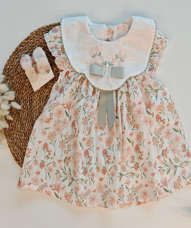 ÖNÜ FİYONKLU YAKA İŞLEMELİ ELBİSE